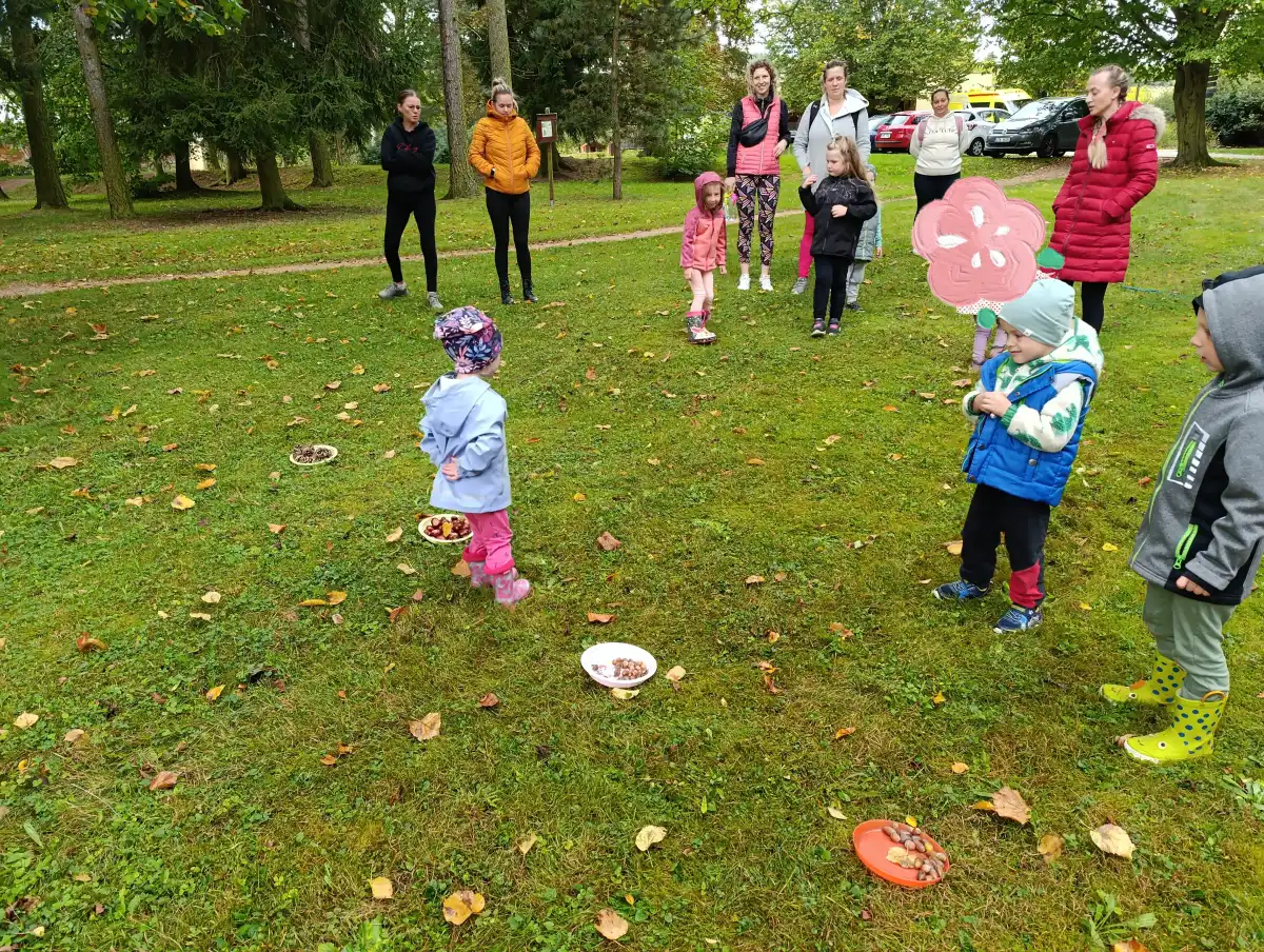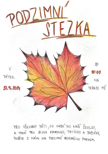 V pátek 27. 9. 2024 se u nás v MŠ uskutečnila akce pro rodiče a děti s názvem Podzimní stezka. Společnou procházkou parkem provázel podzimní skřítek, který měl pro všechny přichystané speciální úkoly.
