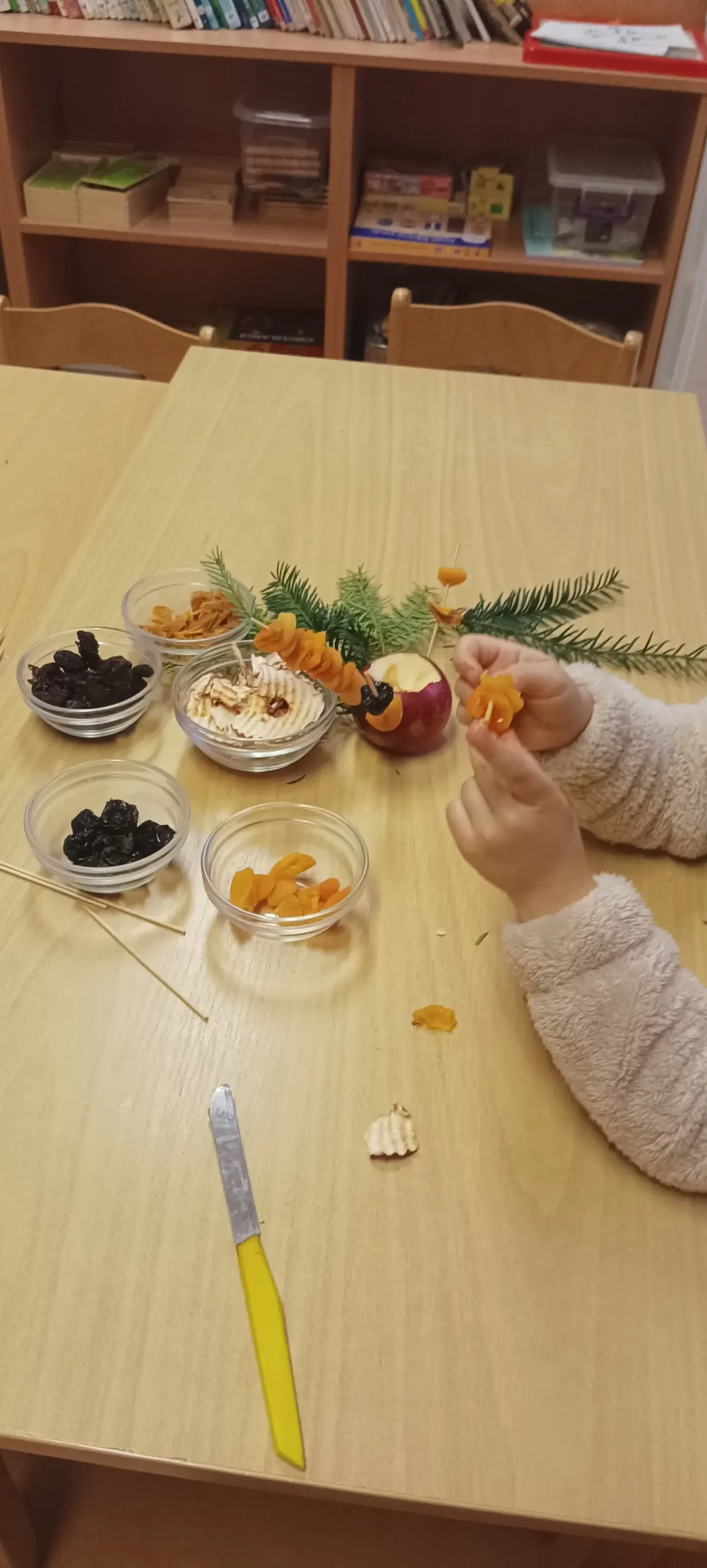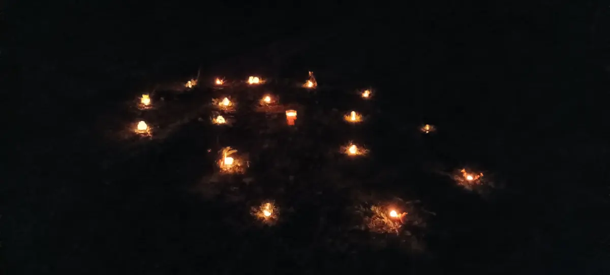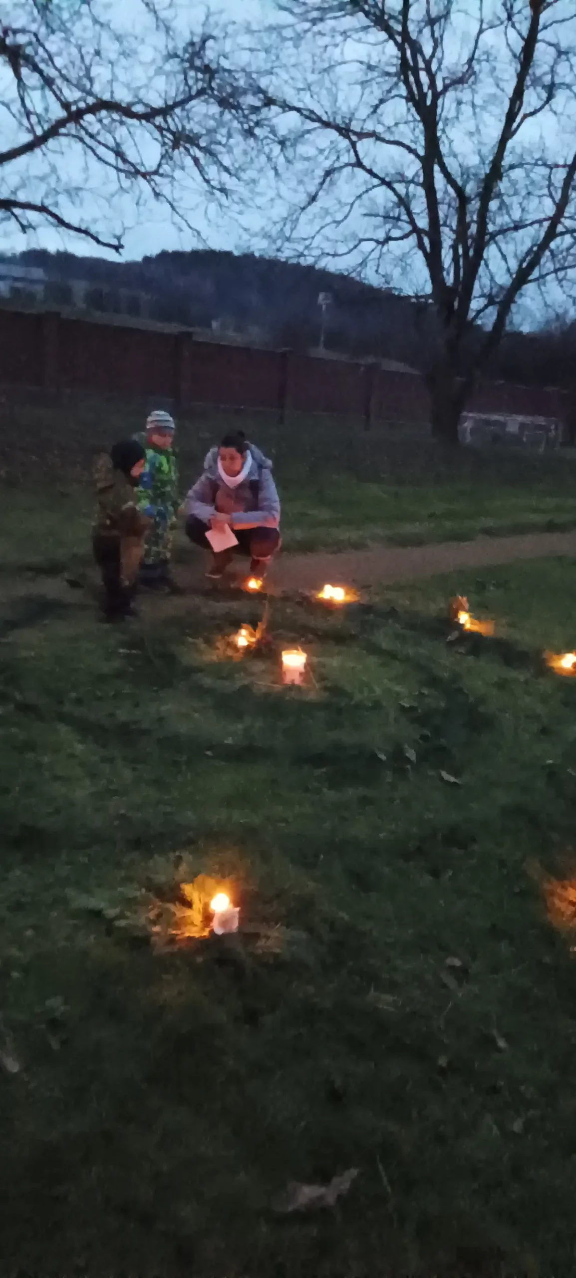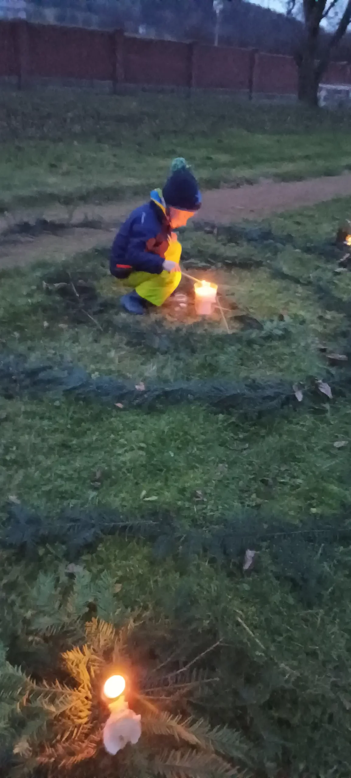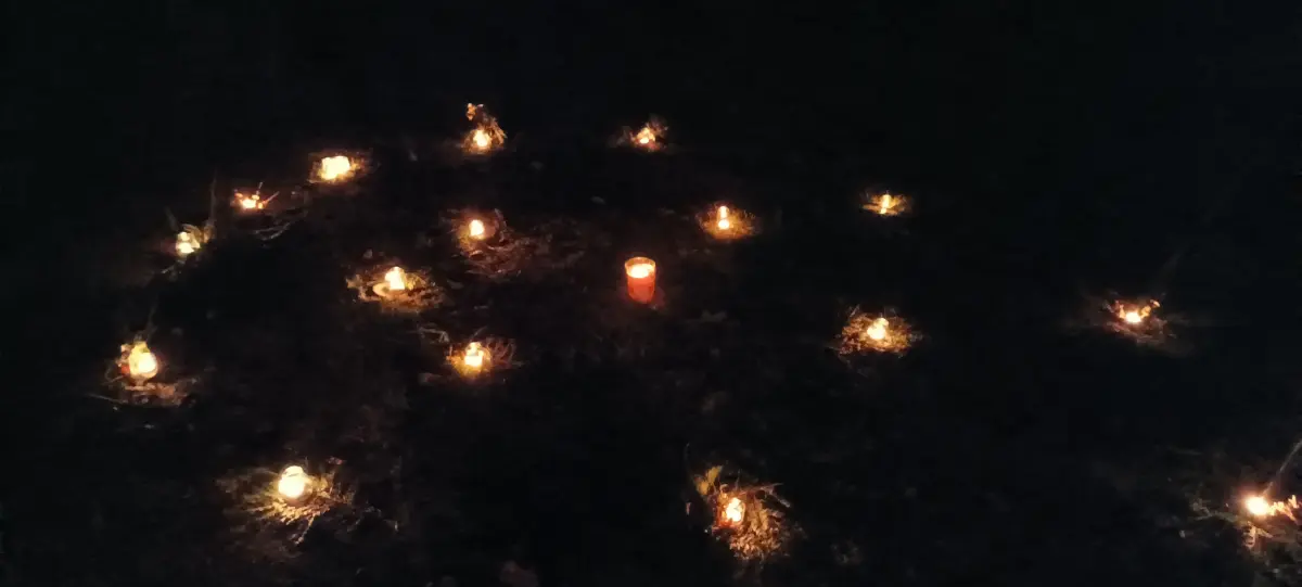 Po sv. Martinovi nastává čas příprav na advent a blížící se Vánoce. Čas očekávání, zklidnění, ale také plný chladných a pochmurných dní. V MŠ jsme si uspořádali adventní ladění, abychom si tyto dny trošku rozsvítili, připravila jsem pro děti adventní spirálu. Během dopoledne jsme společně vyráběli svícínky. Jeden byl klasický z jablíčka a sušeného ovoce a druhý z chvojí na dřevěném podstavci s různými ozdobami. Takto připravené svícny na nás počkaly do odpoledních hodin. Až se přiblížila tma, začali jsme postupně naši spirálu z chvojí rozsvěcet. Každý si pak vzal svůj svícínek a vydal se do středu spirály k velké svíci nabrat si světlo a položit někam na spirálu zapálený svícen. Spirála je o prožitku radosti z přibývajícího vnitřního světla, kterého se nám v této době zvenčí tolik nedostává. Je také o poznávání, že prostřednictvím tiché, klidné a láskyplné činnosti je svět i v pochmurných barvách krásný. Děti a všichni zúčastnění prožili tajemnou atmosféru rostoucího světla, uklidnění, ticha, světla a očekávání. Spirály radosti se zúčastnily nejen děti z MŠ, ale i někteří školáci a jejich doprovod. Chtěla bych moc poděkovat za účast všem a zároveň přeji krásný pohodový blížící se advent.