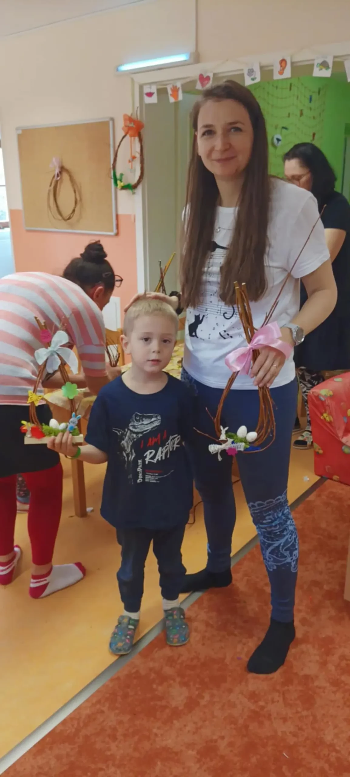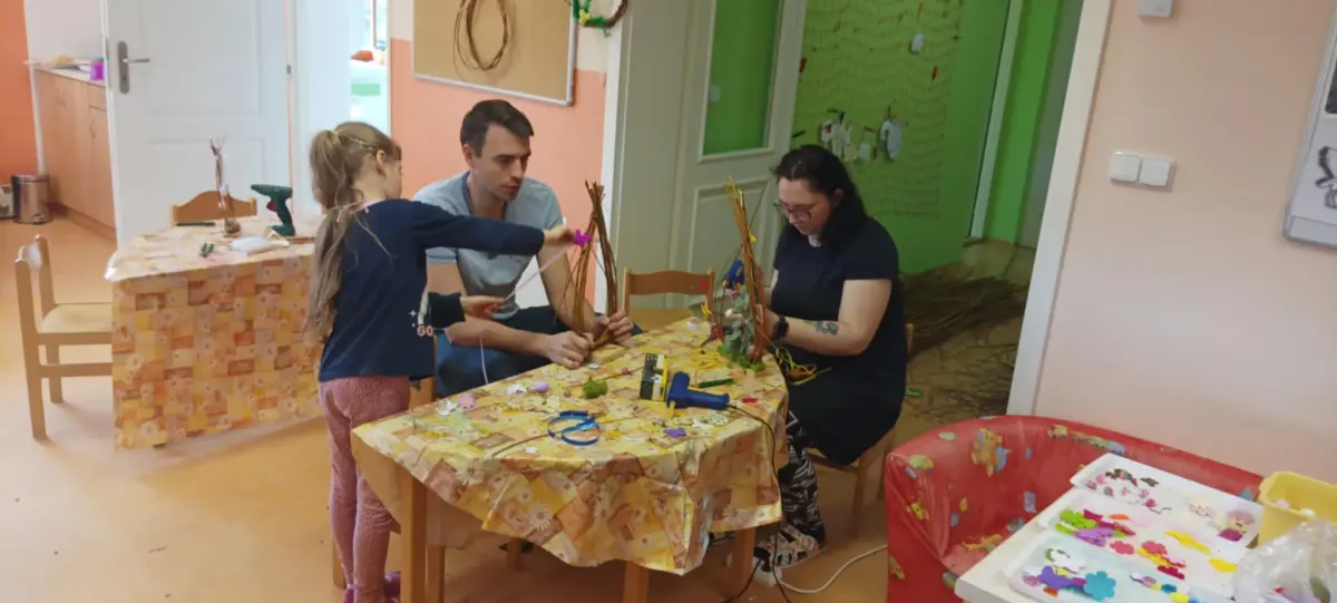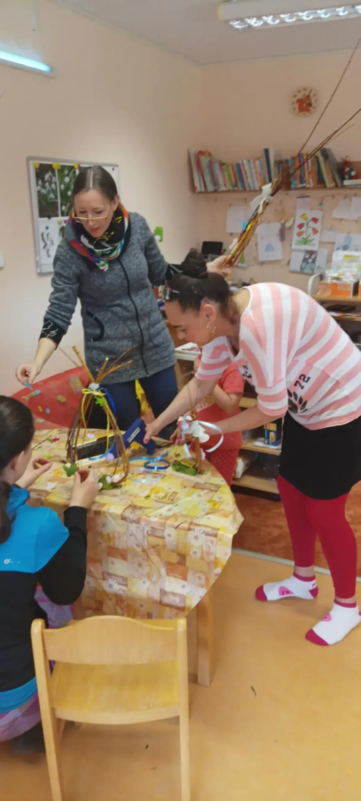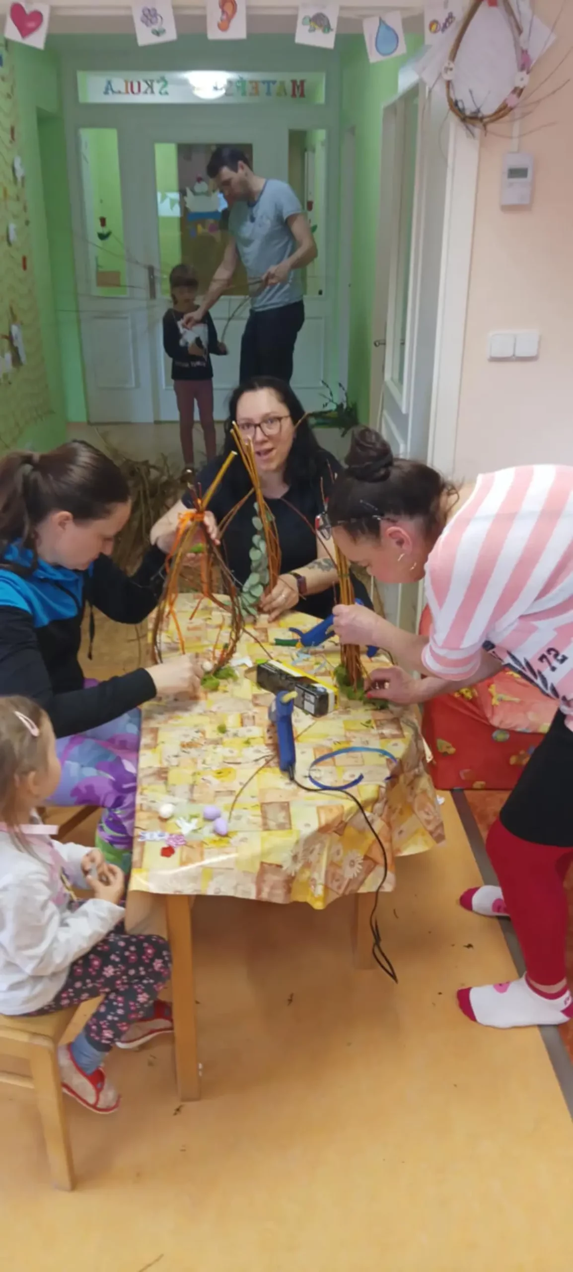 11. 4. 2025 proběhlo v MŠ velikonoční tvoření z vrbového proutí pro rodiče a děti. Děti byly velmi nápadité a zdobily vyrobené vrbové dekorace. Vyzkoušely si stříhání zahradnickými nůžkami a opatrnost při práci s tavnou pistolí. Po celé dopoledne vládla příjemná atmosféra, která nás pěkně naladila na přicházející Velikonoce.