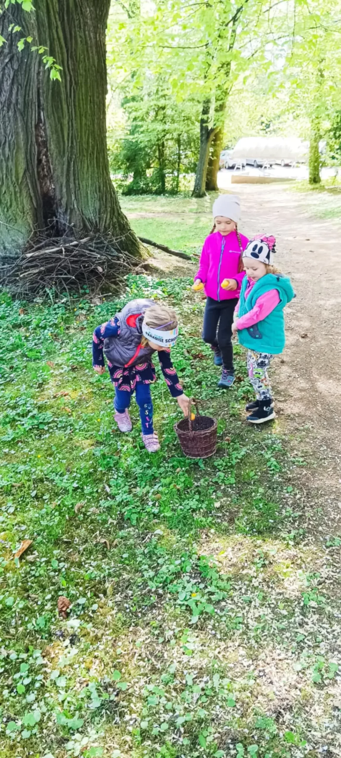 Přes velikonoční svátky byla MŠ uzavřena. Aby si děti mohly ukrátit čas byla uspořádána pro děti z MŠ i ZŠ velikonoční hledačka. Lov 30 vajíček v parku a počítání barevných kamenů uvnitř. Za vyplněnou hrací kartu si hledači našli v parku malou odměnu. Odezva na hledačku od dětí byla kladná, což bylo nejdůležitější.