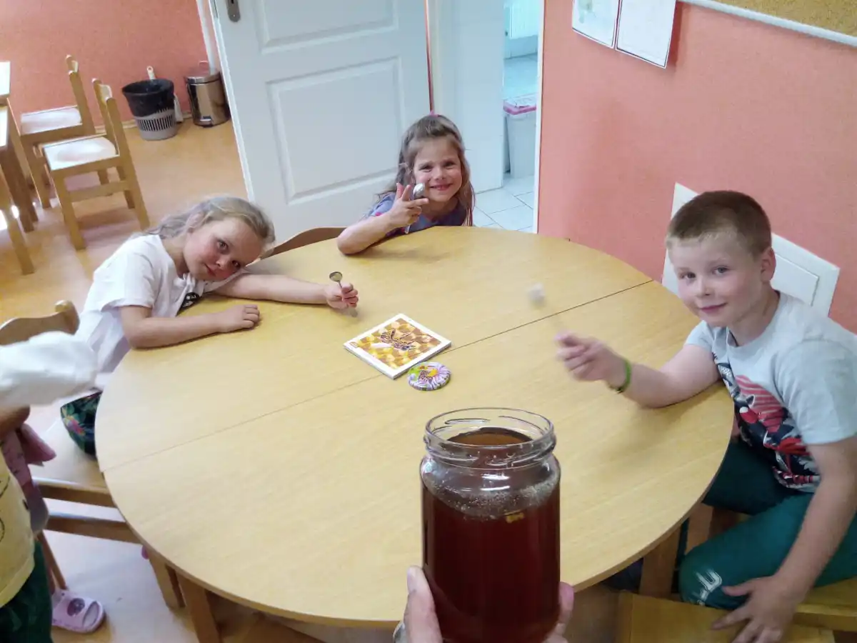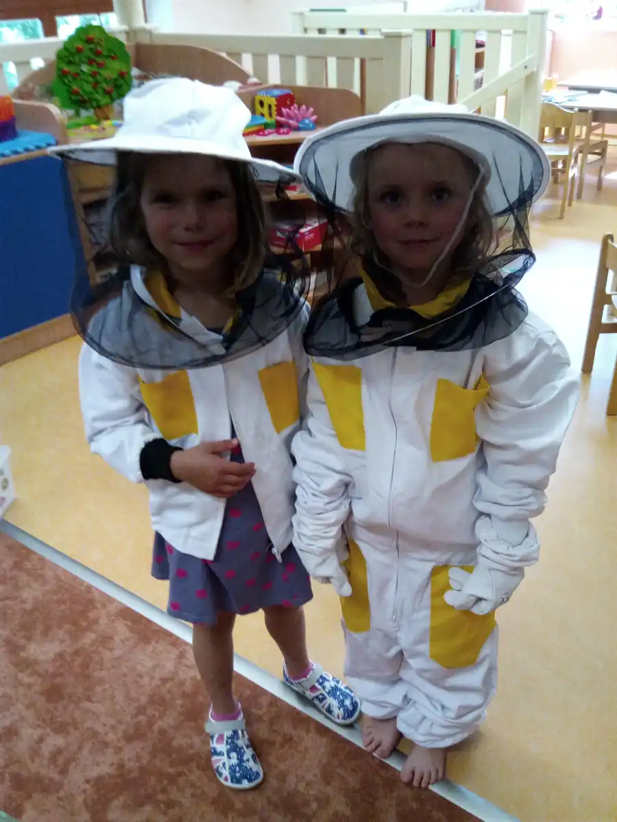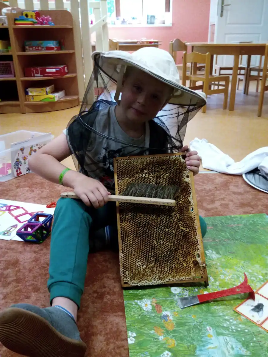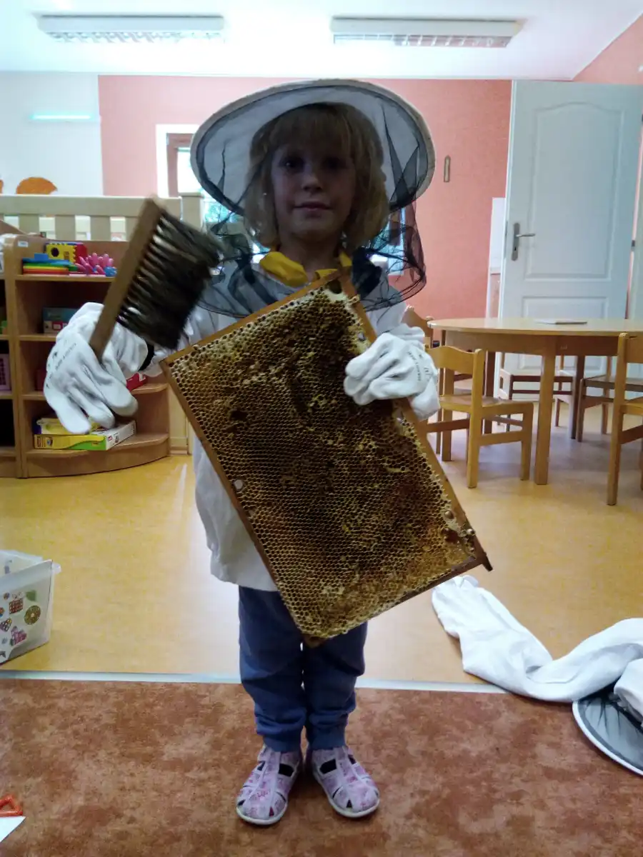 V rámci tématu Život na louce si děti vybraly bližší poznání života včely. V MŠ si tak mohly vyzkoušet včelařský oblek, osahat a prohlédnout spoustu včelařských pomůcek, nástrojů a náčiní. Povídali jsme si o životě včel v úle, proč jsou pro nás včely důležité, a ochutnali jsme med. Děti měly spoustu zvídavých otázek. Dopoledne uteklo jako voda a všichni si ho moc užili.