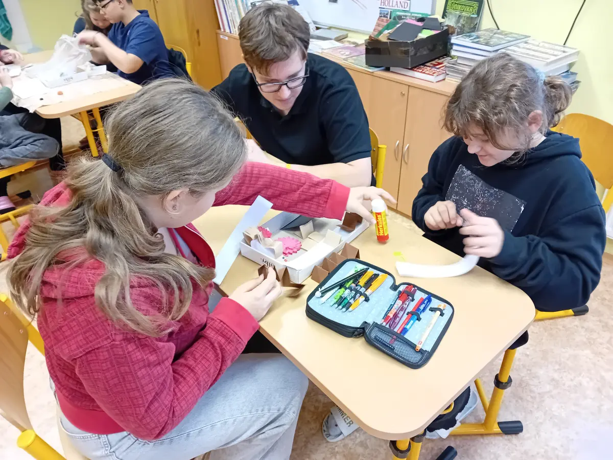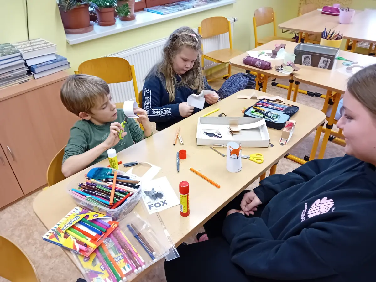 V podzimní dílničce žáci tvořili z papíru ježka a lišku. Motiv ježka se také objevil v podobě rohové záložky. Zajímavou činností byla technika roztírání barvy na polovinu výkresu. Po přeložení a uhlazení papíru vznikl zrcadlový otisk. Žáci poté v barevných skvrnách hledali podzimní motivy (zvířata, krále podzimu, květiny atd.)