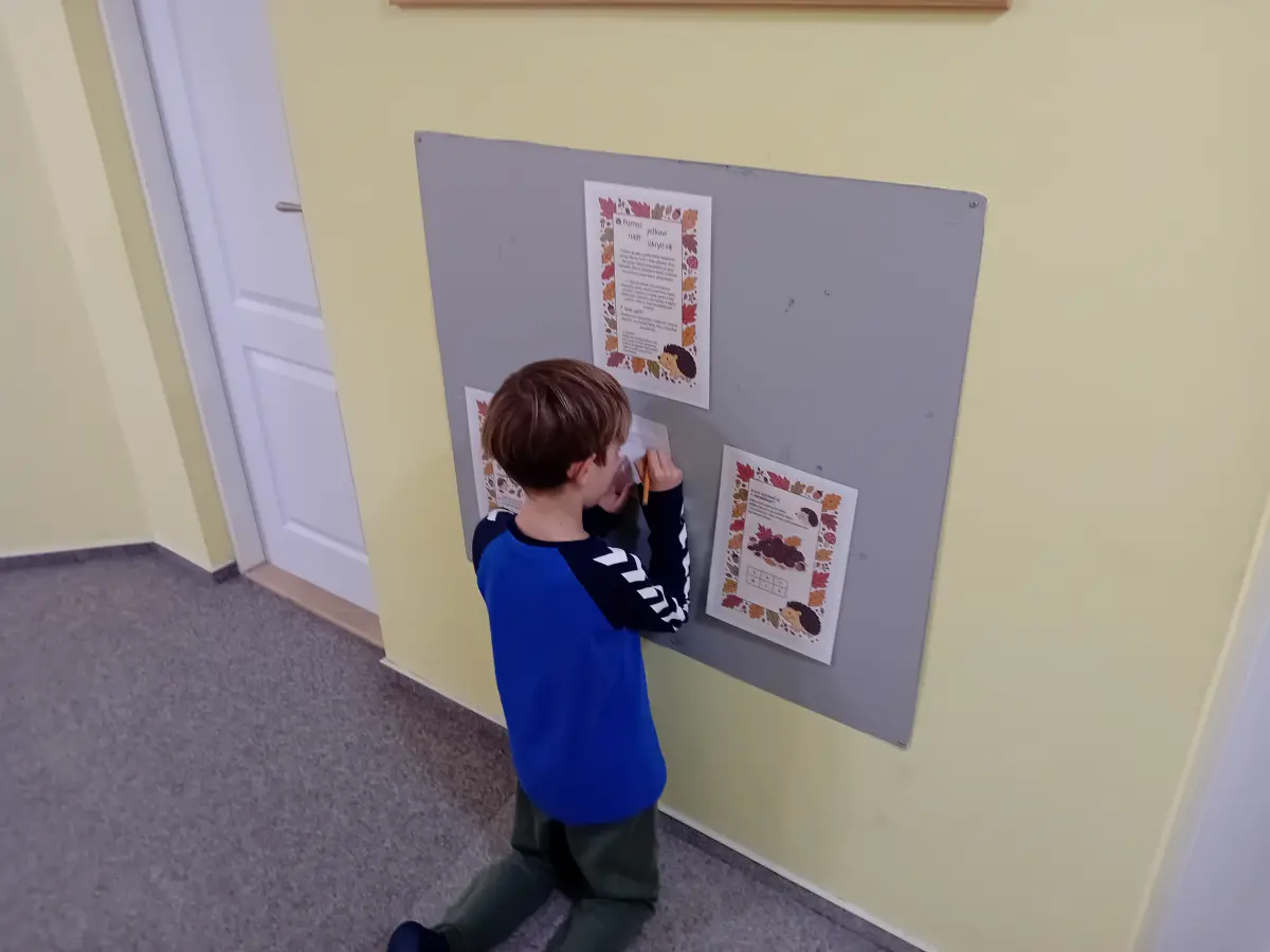 Podzimní atmosféra na naší škole letos ožila díky zábavné hře, která se odehrávala na chodbách a zapojila žáky napříč ročníky. Cílem bylo pomoci ježkovi najít bezpečný úkryt na zimu – ale cesta k jeho pelíšku nebyla vůbec jednoduchá. Čekala na ně řada stanovišť s hádankami, šiframi a logickými úkoly, které prověřily jejich důvtip, pozornost i trpělivost.