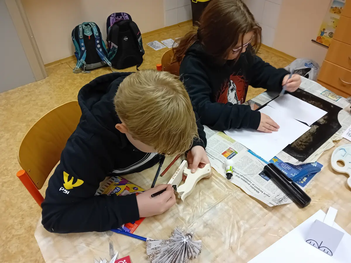 Někteří se s vervou pustili do práce a snažili se stihnout co nejvíce výtvorů, jiní si naopak vychutnávali klidné tempo a soustředili se na jeden propracovaný kousek. Ať už zvolili jakýkoli přístup, radost z hotových výrobků byla upřímná a nakažlivá. Celé tvoření doprovázely jemně znějící koledy, které dodávaly prostoru tu správnou vánoční kulisu a pomohly vytvořit atmosféru, na kterou se bude ještě dlouho vzpomínat.