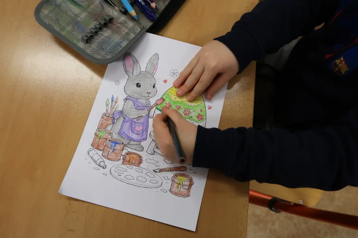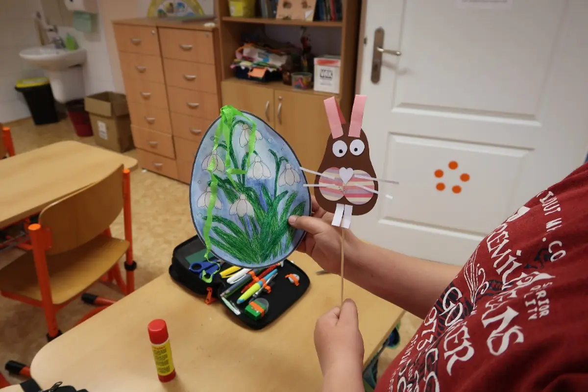 Oranžová třída se proměnila na dílničku, ve které žáci 1.stupně mohli uplatnit kreativitu a prožít velikonoční atmosféru. V úvodu jsme si pověděli pár zajímavostí o velikonočních tradicích. Poté se žáci s nadšením pustili do tvoření roztomilých papírových zajíčků a podložek pod vajíčko. Omalovánka se zajíčkem byla připravena pro děti, které rády vybarvují. Hodina proběhla v příjemné atmosféře a už teď se těšíme na další společné tvoření.